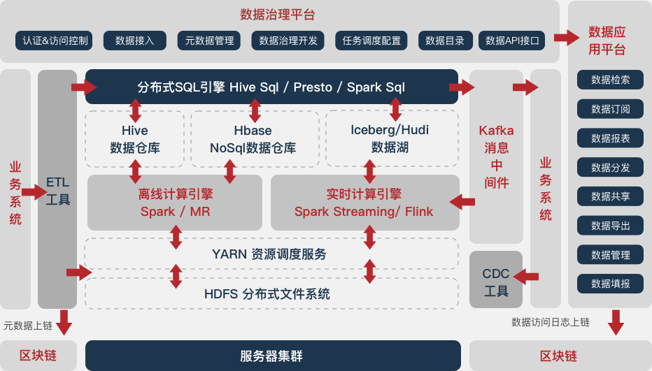 数据中台以大数据、云计算的强大技术能力为支撑,以基于Hadoop生态的湖仓一体数据中台架构为核心,支持大数据存储、大数据计算分析引擎等数据底座,实现数据采、存、算、管、用全生命周期管理。>>
